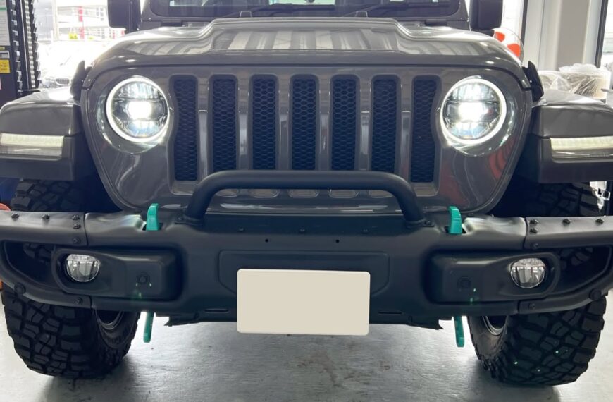 … 続きを読む 「ジープ JL ラングラー」イカリング付きLEDヘッドライト取付